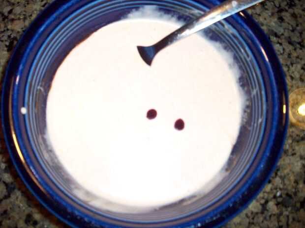 Ahora que estás fuera de tiempo de espera vamos a empezar. Ahora, tú probablemente has mirado la salsa y vio que se ve como tú, débil y patético, una salsa buffalo no debería ver este blanco, debe ser de color rojo! Un macho rojo! Así que vamos a añadir unas 5 gotas de rojo alimentos para colorear, buen trabajo, ahora esto está empezando a parecer intimidante.