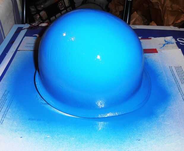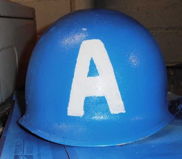 Esta es probablemente la parte más delicada del traje. En primer lugar es necesario adquirir un casco real. Los plásticos son bastante baratos, metal que será más caro. Pero si no te importa una usada que añade autenticidad, usted puede conseguir uno a un precio razonable fuera de eBay. He pagado $32,00 por éste. Luego vas a querer pintar azul. Para la facilidad de tiempo, fui con pintura en aerosol. Utilicé una pintura de alto brillo y rocía el casco entero. Tarda 24 horas para se seque completamente. El siguiente paso es la "A", que me dio un poco de problemas. He incluido los pasos para que usted no hace lo mismo y lo corregido. Al principio que decidí usar una plantilla, así que compré una plantilla plástica y cinta de pintor. Los dos problemas tuvo fueron: 1. debido a la curvatura del casco, la plantilla no quedaría plana, que dejó huecos en el lado cuando traté de pintarlo; y 2. No sé si fue por el tiempo o la temperatura, pero la pintura blanca no fue la vinculación bien y mantener goteo y finalmente terminé con una gota que también quita la anterior capa de azul. Al final, me resprayed el azul y luego la mano pintados con alguna pintura casa regular a mano alzada. Salió mucho mejor.
