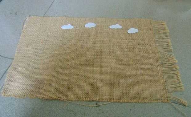 Paso 4: Cortar las nubes en el blanco se sentía. Pegarlos sobre la arpillera.