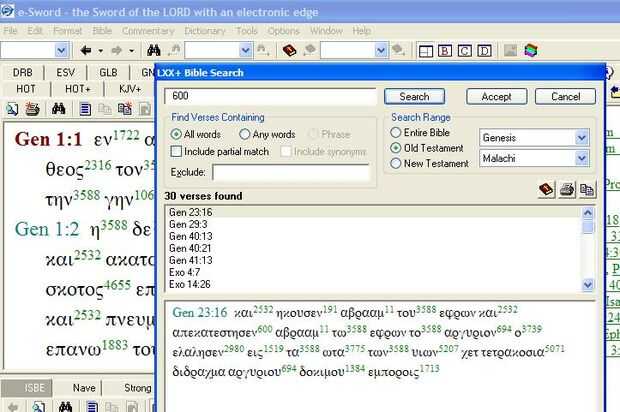 Realmente quería G605 de búsqueda, pero una búsqueda anterior de la misma no produjo ningún resultado. La forma del sustantivo de la palabra no aparece en la Septuaginta. Si nos remontamos a la gráfica en el paso 6, verá que G605 se relaciona G600. Busqué G600, que es la forma del verbo de la misma palabra ("Restaurar" en lugar de "restauración".)