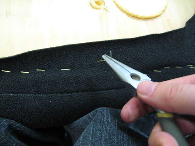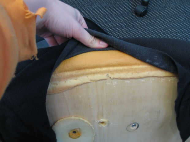 Retire las grapas de la parte posterior del asiento que usted puede levantar un poco de la tela.