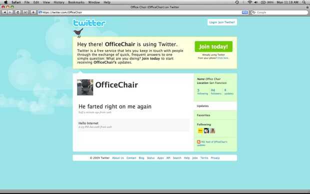 el twittering aseo oficina tweets los tiempos y tipos de uso del inodoro en la oficina. ¿Quieres saber demasiado acerca de los hábitos de sus compañeros de trabajo y compartir con los internets? Aquí tienes.Muchas gracias a randofo y su canto silla d