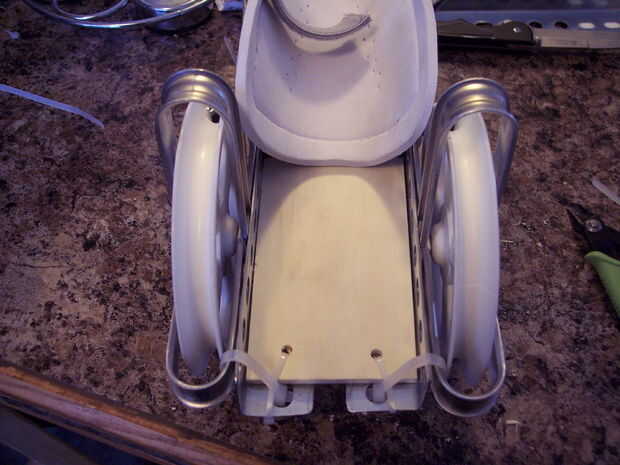 Use amarres de zip a través de estos agujeros para sujetar a la parte inferior de los largueros del bastidor en la parte delantera y trasera de ambos lados. Se trata de la cesta básica. Debe sentarse el nivel, si no, ajustar las ruedas para un buen equilibrio.