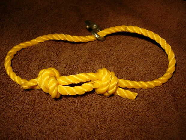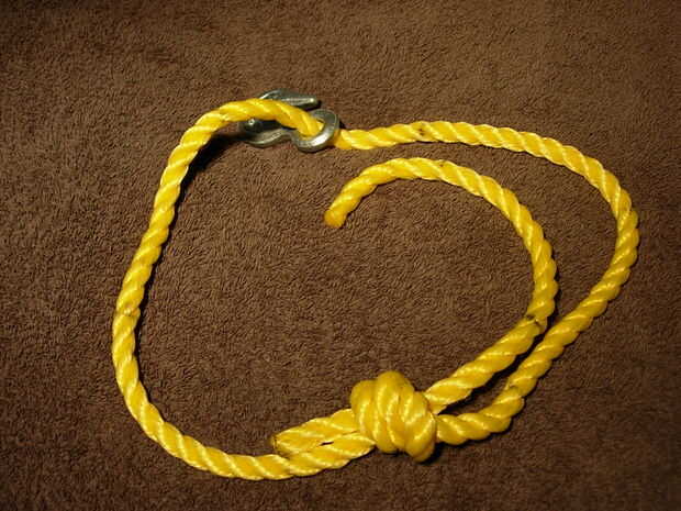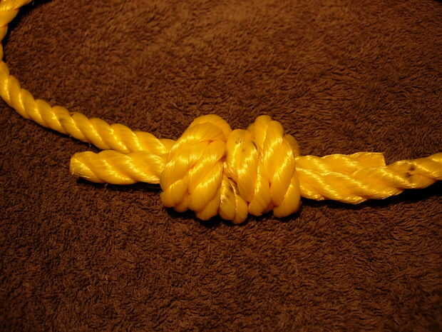 4. añadir otro nudo de tope al otro lado de la cuerda (cuadro 5).