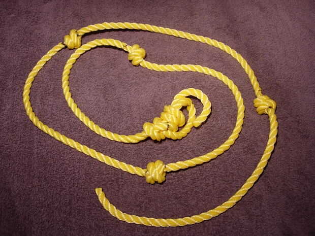 Por lo tanto, para obtener 20 pies (6.09 m) de la cuerda de izado con un nudo en cada pie, usted necesita comprar 35 pies (10,66 m) de cuerda regular. Estoy seguro de que hay una manera más fácil de obtener los números pero esto es como lo hice.
