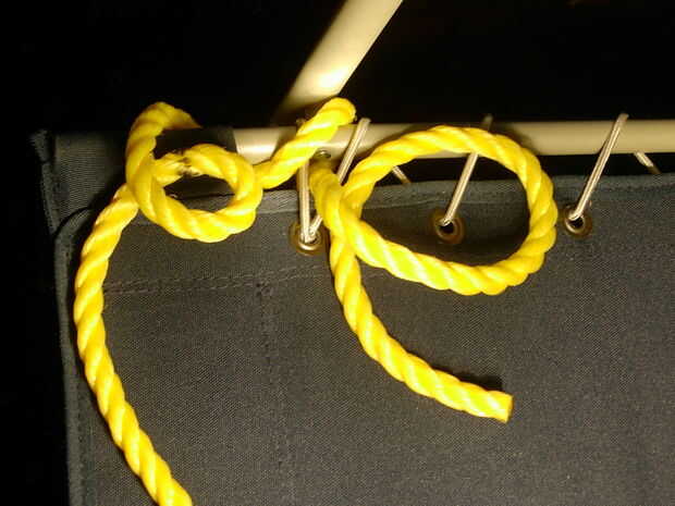 3. Ate el extremo de 33 pulgadas (84 cm) de la cuerda de bajo y sobre el lado de la silla, luego sobre la barra (imagen 5).
