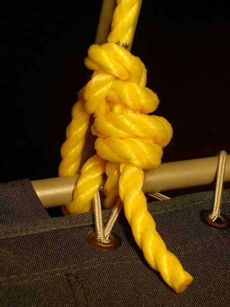 4. Tire hacia arriba en el otro lado (foto 6). Esto impide que el nudo móvil añadiendo más apoyo.