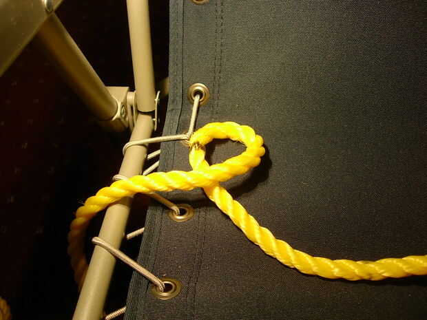 4. Enrolle la cuerda alrededor de la parte posterior de la barra y por el nudo (Figura 4).
