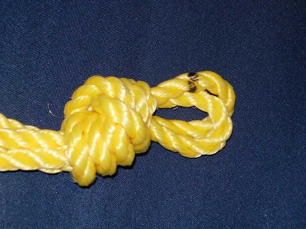 Ahora el nudo de tope puede ser atado en la parte posterior izquierda de la esquina nudo as de guía (no foto).