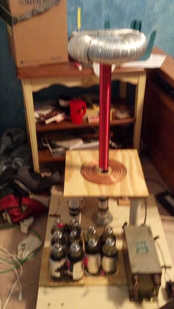 Esta es una guía sobre cómo construir una bobina de Tesla de tamaño medio. Construí de piezas que tenía que poner alrededor, todo lo que tenía que comprar alambre del imán, en total gasté menos de $30! Para las construcción de la primera bobina, no sugiero esto usando una fuente independiente de las instrucciones. Este es mi primer, y utilicé una multitud de fuentes para hacerlo. También, hice la parte de matemáticas aburrido detrás de él. Al principio traté de saltar algunas de las matemáticas y simplemente "peluca de lo" pero eso no funciona. Para la parte de matemáticas sugiero deepfriedneon.com, pero he encontrado un sitio mucho más simple: http://www.classictesla.com/java/calculat.html#WireFreq. Una vez que sepa qué materiales y dimensiones que se va a utilizar, vaya a este sitio para obtener la cosa de resonancia todo sincronizada hasta lo más cerca posible. Lea toda la guía y tal vez la sección de comentarios, antes de hacer nada. Lea también algunas otras guías y tal vez la Wikipedia artículo sobre bobinas de Tesla antes de decidir si o no embarcarse en un increíblemente frustrante, pero gratificante viaje. Que esta construido para un proyecto de ciencia de la high School secundaria, y aunque terminé en el último minuto, no tarda más de quizás 20-30 horas de trabajo. Entré en unos concursos con esto por lo que debe votar por mí si te gusta este instructable.