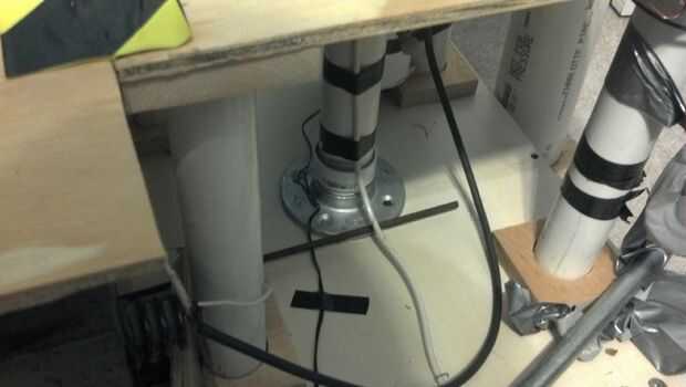 8. poner PVC en cada hoyo antes el pegamento se seca. Poner la parte superior de la base, y todo debe encajar.