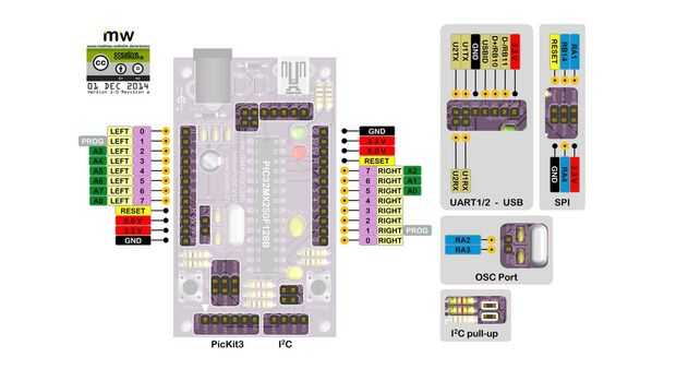 • PicKit clavijas pinrow separado para programar el chip directamente usando el PicKit3