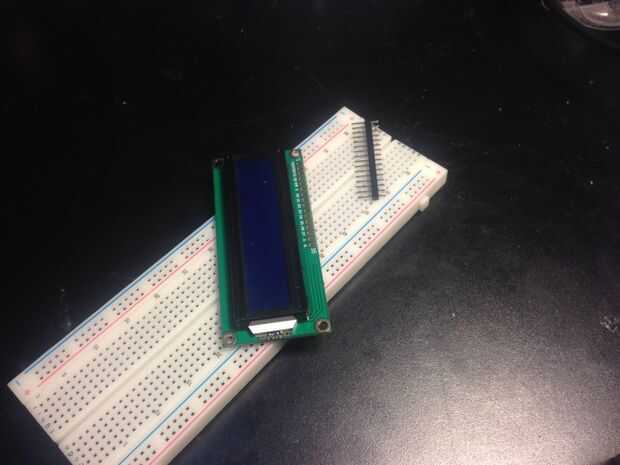 La soldadura de pernos de encabezado a un LCD 1602A con un protoboard