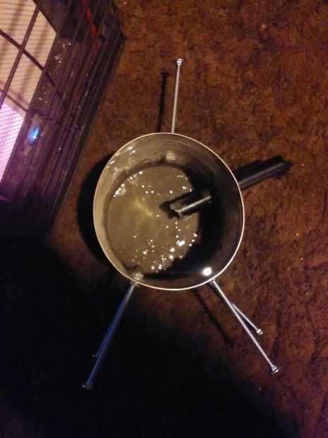 usé 4 pernos largos para la lrgs y 2 arandelas y 2 tuercas con locktight en rosca para soporte (patas traseras son más cortas que feony darle un filt tan moltin derrame de acero o aluminio fuente hacia fuera). 8 pulgadas de largo pedazo de cuarto pulgadas de tubo de acero inoxidable para acabar mi antorcha en yo forge de calor y no siento como sacrificar una manija de cobre amarillo agradable así que puse un tronco igual que piernas tan puede moverlo cuando está caliente.