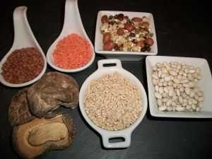 -1 taza de despensa seca artículos-lentejas, habas, cebada, arroz, etc., (usar lo que tienes, pero elegir artículos con un similar tiempo de remojo para la rehidratación. O si lo prefiere, usar los enlatados que no necesitan ser remojadas)