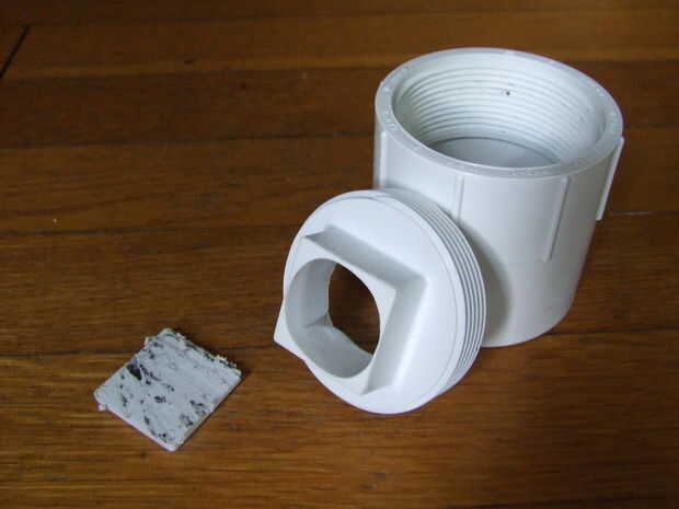 El tapón de limpieza es donde el vástago sale del cilindro, por lo que necesita modificación. Cortar aproximadamente 1/8" el extremo cuadrado, luego lo elimine las rebabas y ensanchar el interior con una herramienta rotativa o hasta que la varilla del pistón se ajusta a través con un pequeño espacio como se muestra.