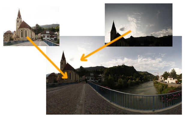 Las imágenes correspondientes de los tres sistemas se fusionaron, así que trate de utilizar el mismo estilo para los tres grupos (usted puede sincronizar todos ellos) y variar solo un poco la exposición, el contraste, el nivel de negro y otros parámetros por revelar detalles de la imagen, pero mantener por ejemplo el mismo balance de blancos. Usted puede también más oscuro el canal azul para hacer más visibles las nubes y variar los niveles para hacer las nubes mismas mucho detalle.