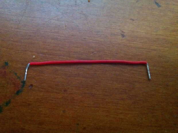 Si usted tiene un sistema de alambre del puente que adquirió de Radioshack, con la caja de compartimiento y longitudes de alambre, utilice la más grande rojo! Es un tamaño perfecto para este proyecto, dejando suficiente espacio para formar un "gancho" alrededor de los pernos de la Rúbrica femenina para hacerla permanecer en el lugar.