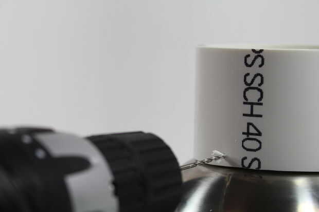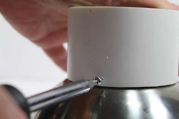 Instale los tornillos. El PVC es suave, por lo que los tornillos deben morder el material y sujete firmemente el reflector. También puede usar cemento de PVC para asegurar las piezas entre sí permanentemente. Si decide ir a esa ruta, pegar todo junto antes de pintar. Utilicé tornillos para que sea más fácil reemplazar el reflector si necesitaba, ya que no tengo cemento de PVC los tornillos eran más baratos.