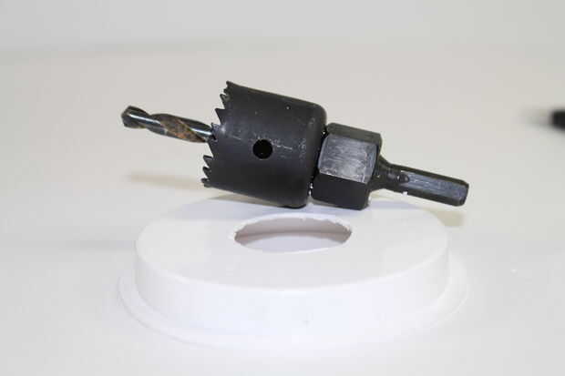 Usando un 1 pulgada en un taladro, sierras de corta un agujero. Si no tienes acceso a un taladro, corte un orificio de 1-1/8 de diámetro y cortar con un cuchillo.