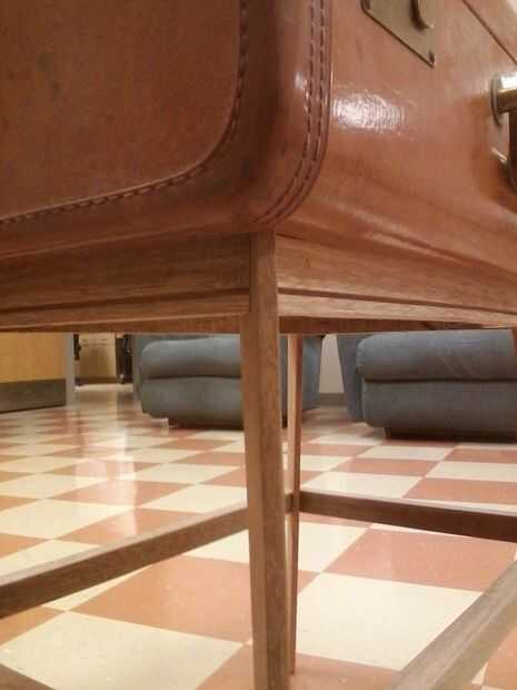 Desde aquí, se hicieron casi. Sólo arrancó algunos palos de 1 "x 3/4" de lo que quedaba. Mide 7" hacia abajo desde la parte inferior del faldón y marcado para el la parte superior de la rodillera. Esto transferí todo el camino alrededor y mide este punto pierna de longitud de los tirantes. Asegúrese de que todas las patas están sentado derecho y la Plaza antes que hace esto y luego sólo medir un lado corto y lado largo. El otro lado largo tiene que coincidir exactamente con la primera de ellas, y lo mismo va para el lado corto. Esto es para mantener la escuadra. Si todas las llaves son medidas diferentes y luego las piernas no están sentados Plaza y tu mesa no sentarse derecha. Le enchufamos todos agujeros expuestos. Para terminar, sólo arena y había derribado los filos con papel de lija. No he elegido un final todavía pero creo no mancha como la caoba se ve bien como es pero voy a hacer como un aceite de tung o alguna capa de transparente. Espero que hayas disfrutado este instructable y mucha suerte. Por cierto la maleta tan en la foto es la otra maleta cool que tenemos. Era demasiado marrón en color marrón con la caoba. En su lugar. Voy a hacer una variación de este diseño. Va a ser un escritorio de ordenador portátil pequeño. Ojala saldrá pronto.