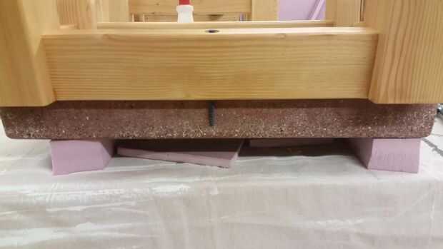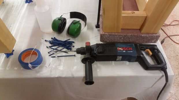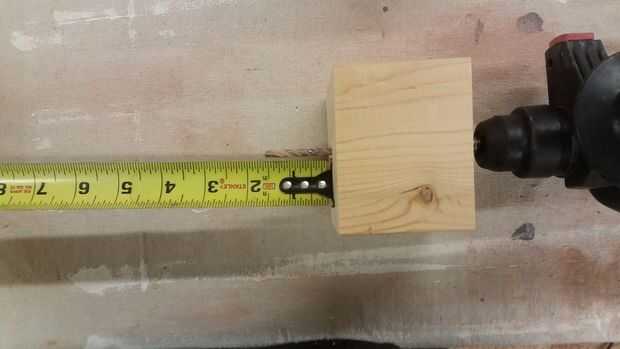Ahora esta vez, elegir sujetadores ligeramente más cortos, terminé arriba solamente en la losa de 1", que no da la más fuerte fuerza de retirada, pero honestamente sólo quería mantener el hormigón resbalen las piezas de madera. También usé un bloque de tope para no ir demasiado profundo (en la foto no era mi final, pero se dará una idea lo que me refiero). Ponga en algunos expansivas y estamos casi listos!