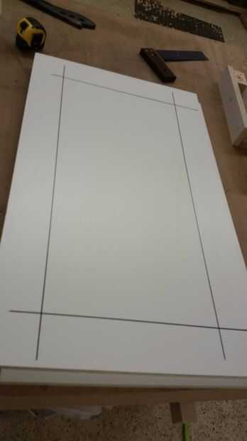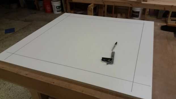 Corté las tapas de dos bancos y la mesa, con el conocimiento que tengo que hacer dos vaciados de banco separada. El acabado superior es 36 "x 36", por lo que agregan 3 pulgadas a cada lado y una tapa de 42 "x 42". El tamaño superior acabado de bancos fue 24 "x 12", así que les hice 30 "x 18". Entonces corté un montón de acción para los lados en 2.5" de ancho. Esta dimensión será el espesor, así que escoja el tamaño que desee teniendo en cuenta la resistencia del concreto que vas a verter, la total, y por supuesto cómo usted quisiera que mirara. Quería una tapa aspecto fornida y fue vertiendo concreto relativamente baja resistencia (4000 psi con fibra de vidrio mínimo para este proyecto), así que fui bastante gruesa en 2.5". Marcado donde querían los bordes de las piezas de acabado de la melamina como guía para el refuerzo de borde.