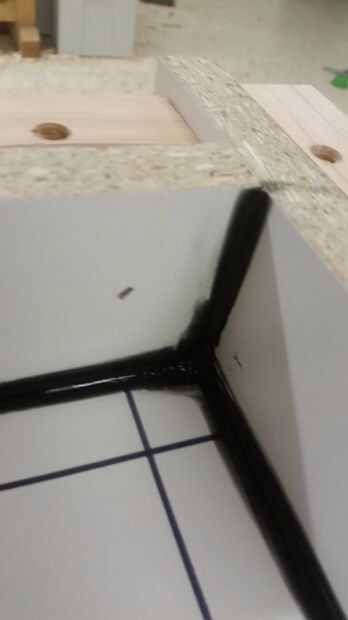 A continuación utilicé silicio negro para sellar todos los rincones, que pueden ser un poco un lío, pero es una forma rápida y barata para sellar y hacer un ligero redondeada sobre el borde de la pieza final. He empezado a usar ahora una mejor manera, pero que será en un futuro instructable. Asegúrese de que no hay lugar para que agua se absorberá en los bordes de las piezas de madera contrachapada, te causan estragos en el futuro.
