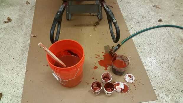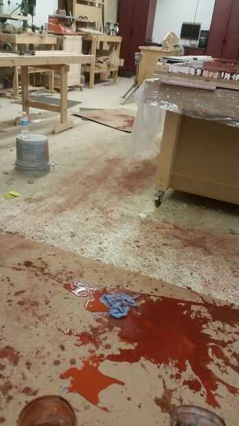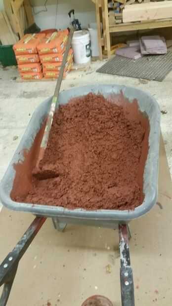 El colorante rojo hizo parecer una escena de Dexter, pero el concreto tenía el color deseado. Asearme bien por lo que no ves tan culpable de lo que asemeja el color de la sangre. O utilice un color diferente.