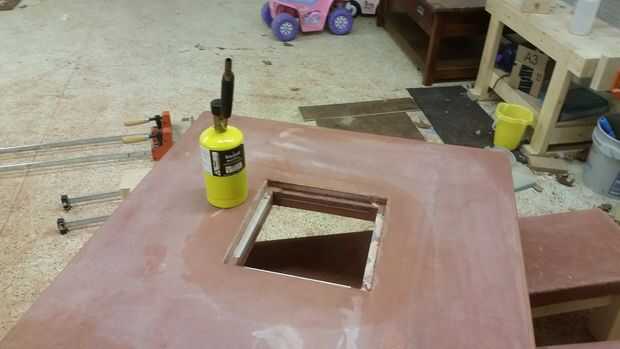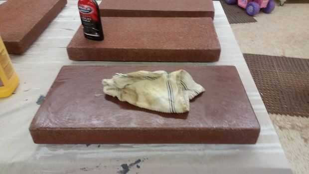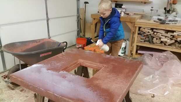 Ahora puedes sellar y brillar todo. Necesita esperar un período de tiempo para el concreto curar antes de sellar, acabo de leer la etiqueta de su sellador deseado para asegurarse de que usted ha esperado lo suficiente. Usar un sellador de silicona base de quickcrete, que funciona bien. Inundan todas las superficies varias veces hasta que deje de tomar en el fluido, lo limpie y luego pulirlo. He usado ceras automotrices con resultados razonablemente buenos, Carnuba basado en ceras son las más difíciles, así que usarlos si se puede. Un buen ayudante (mis 4 año de edad) puede el hombre el buffer de alimentación. Yo también derretido algunas parafina para rellenar algunos de los vacíos más grandes, he probado una capa, pero los nunca parecen adherirse bien, por lo que volvió a por lo menos suavizar con cera.
