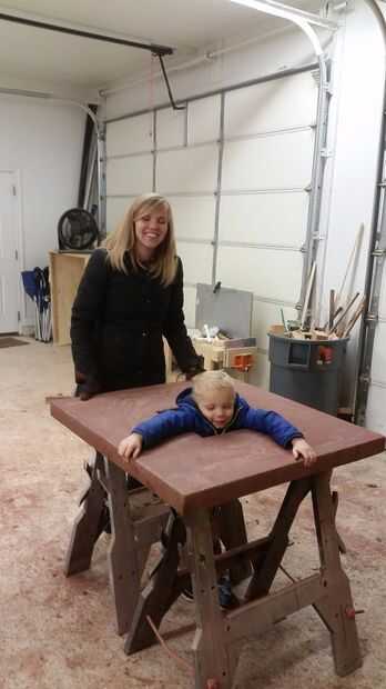 La mesa por otra parte plantea algunos retos importantes. En primer lugar, resulta que 3 bolsas de cemento en la parte superior de la tabla pesa mucho (digamos 240 lbs... como dijo en las bolsas...), una de las claves para un matrimonio feliz es limitar la cantidad de elementos de elevación de equipo pesado que tratas a tu esposa la cuerda en elevación con usted. Así que pasé una cantidad considerable de esfuerzo lo demold y voltear por mí mismo. Entonces una vez que lo hice, me di cuenta de mi error al no usar cualquier desmoldante en la sección de centro.