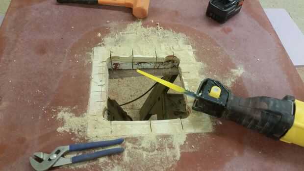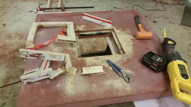 Es en donde con cuidado pero con fuerza dejó saber que tiene jefe. Al principio probé solo la libra hacia fuera. Fue una mala idea y desató un racimo de los bordes del concreto, así que no lo hacen. Entonces conseguí mi taladro y sierra alternativa y cortar el centro y realizó una serie de cortes de borde, detener justo antes el concreto, que no Sierra bien con una paleta de madera. Al menos sacó la madera. Entonces luché con el aluminio, puesto que no había ningún lanzamiento de molde, se muy bien a lo concreto. Después de probar varias formas de golpear con las cosas, me cambié al viejo enfoque de soplete fiel. Aluminio transfiere bien el calor y se expande con el calor, así que aplicar una corta ráfaga de calor que el aluminio y debe pop gratis. Salir de algunos pequeños de hormigón en los extremos de la expansión, pero al menos lo consiguió gratis del molde.