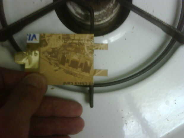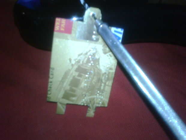Para el controlador de la banda de rock sólo hay una ligera curva en las dos lengüetas para obtener la tarjeta de crédito para sentarse a ras con la parte posterior del controlador. Luego tomamos el ERT, calor para arriba y haga un orificio en la zona donde está el orificio del tornillo, simplemente guesstimated (puede usted creer que los "guesstimated" no provocar ortográfica) donde va el agujero, parecía funcionar hacia fuera para mí. Si su nivel de confort no es alto bastante puede vuelva a colocar la tapa en el controlador y marcar donde debe ir.