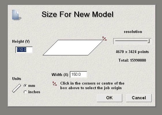 Un nuevo modelo se abre en Artcam con dimensiones lo suficientemente grandes como para tener el diseño encaja con aproximadamente 1cm de espacio libre a cada lado para evitar que las máquinas de herramientas que chocan con las pinzas que se utilizan en la máquina para asegurar la pieza de acrílico.