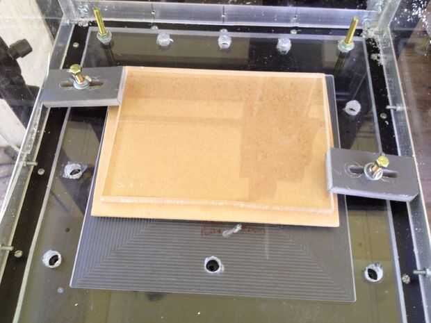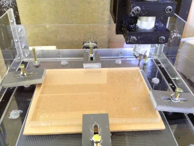 Usando una sierra de calar, una pieza de acrílico, con las mismas dimensiones que el modelo de Artcam es cortar y asegurada en la máquina.
