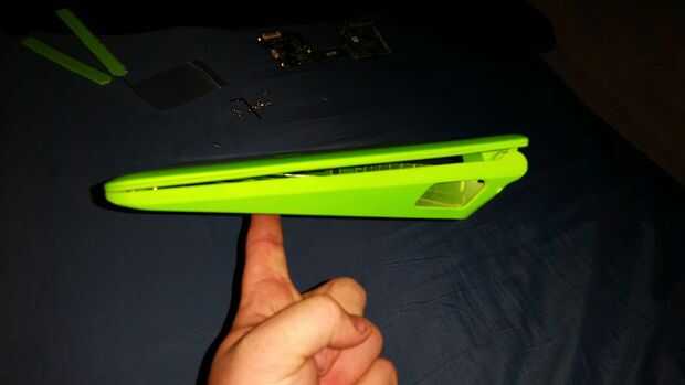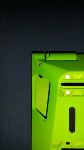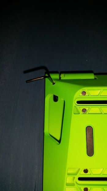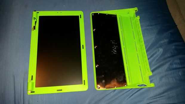 Siguiente lugar de la pantalla. Posición como si estuviera en la posición cerrada ya instalada. Ahora deslice la bisagra de la pantalla en su lugar con cuidado para no encajar las ranuras de la bisagra.
