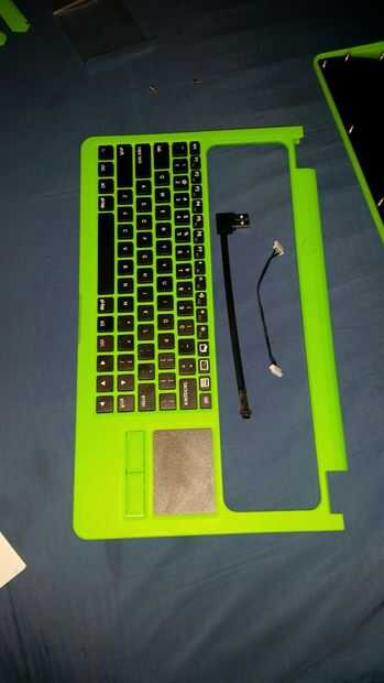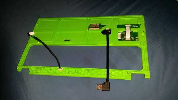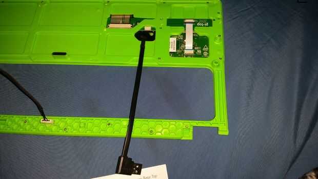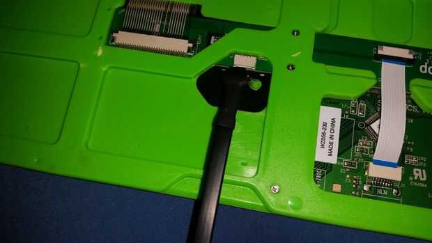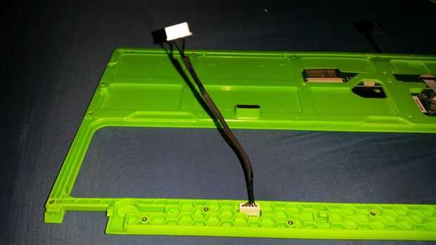 Instale el botón de encendido y teclado USB cables en sus respectivos puntos en el teclado.