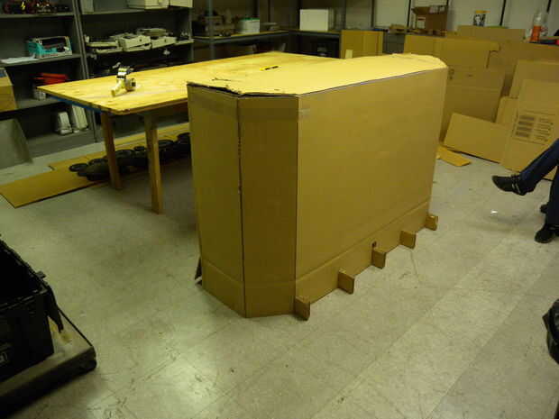 Un tablero se utilizó para dar realmente todo esta fuerza y la posibilidad de añadir más tarde las ruedas. Quería hacer la cosa entera de cartón pero el tiempo se acaba (creo que era el jueves por la noche y tengo una boda este fin de semana)