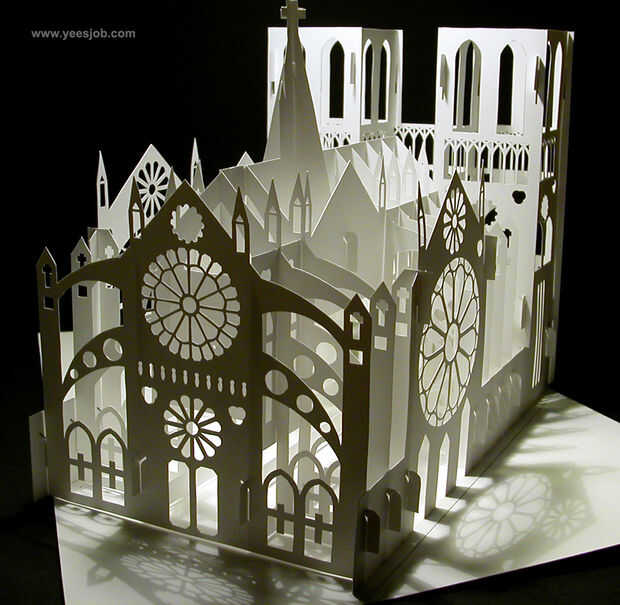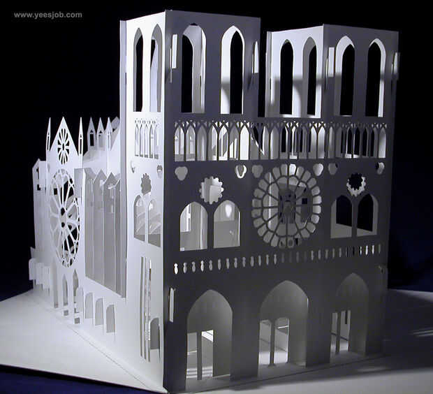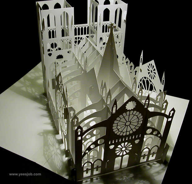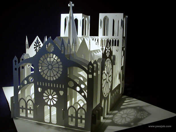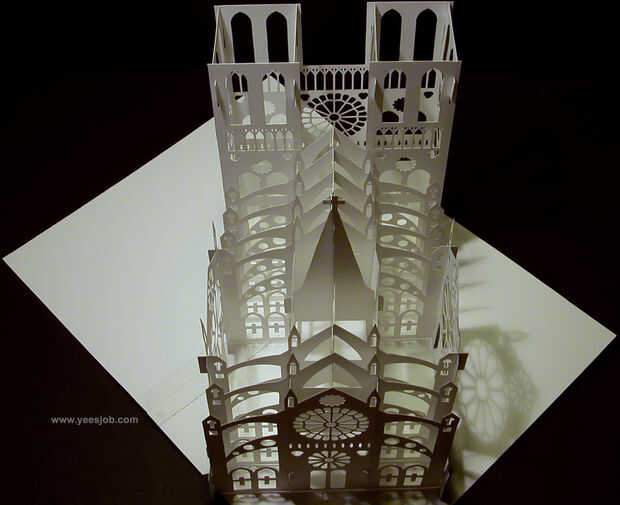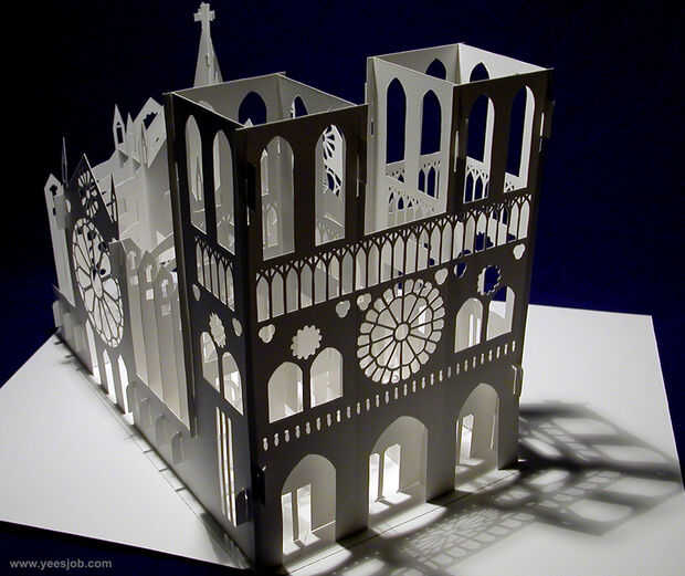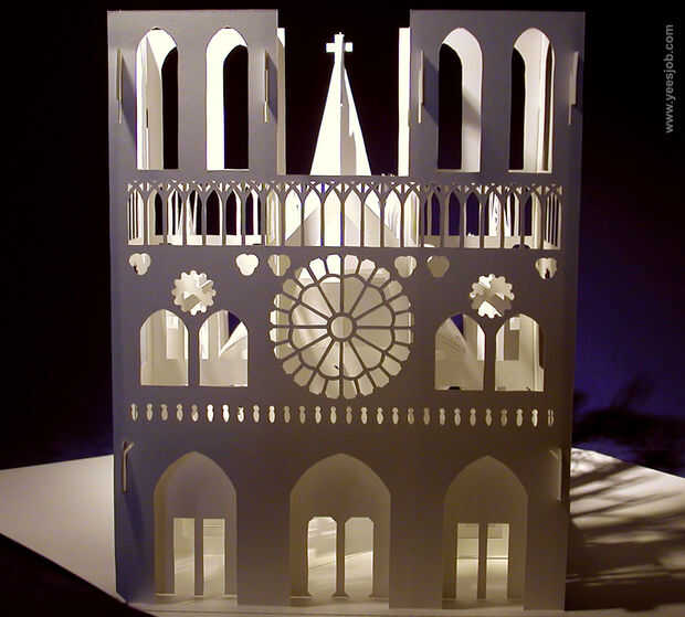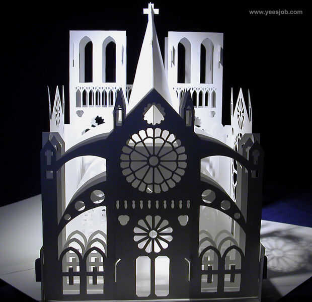 La tarjeta de Notre Dame catedral pop-up Kirigami Origamic Architecture