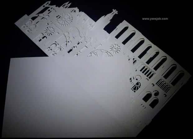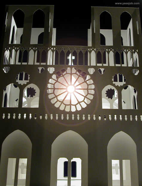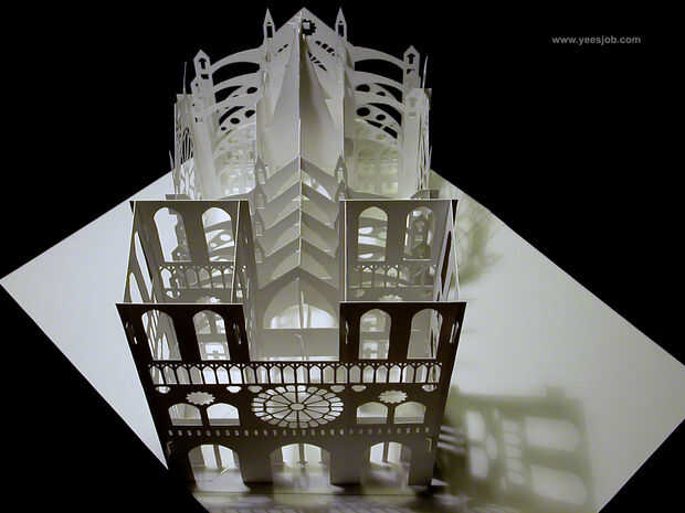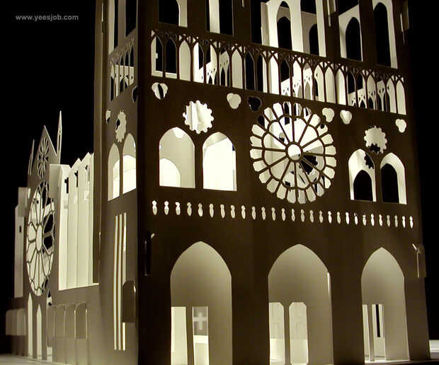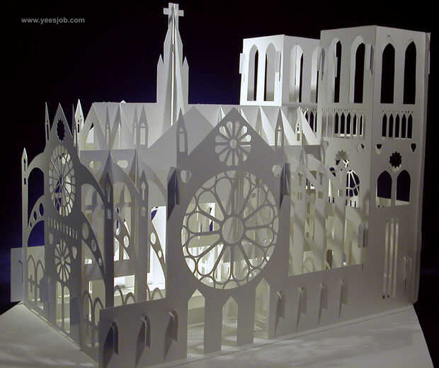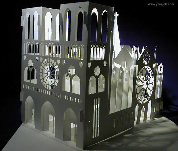 esta es mi Catedral de Notre Dame que hice de papel. Puede ser doblada. Utiliza un único diseñado sistema de encastre que no pegamento se aplica (excepto sólo dos piezas se pegan a la placa base). Espero que te guste.
