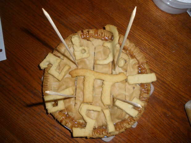 1. Coloque cuatro palillos de madera en el pastel como se indica en la imagen