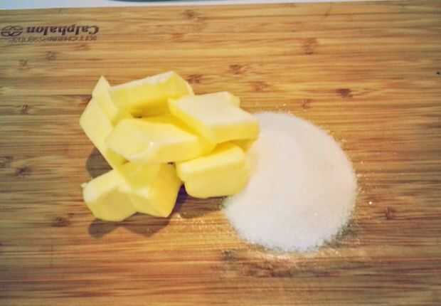 La primera etapa de la corteza de la nuez es la mantequilla y el azúcar.