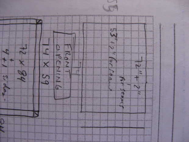 Por lo tanto, agregar el margen de costura, las dimensiones ásperos por la puerta 57 "+ 1/2" baja costura + 1/2 "alta costura la costura izquierda 72" + 1/2" x 1/2" derecha costura; o 58 "x 73" total.