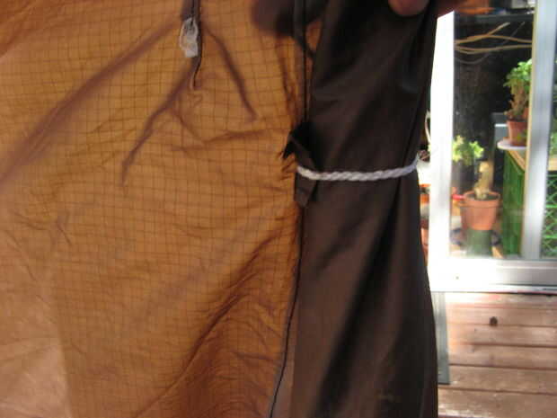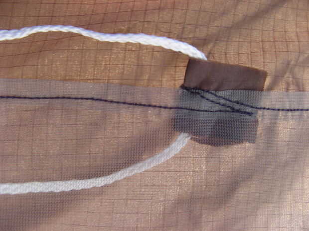 3.) en este punto añadí un par de cadenas de amarre posterior. sólo algunos línea de algún tipo de corte y coser a tu gusto. Mina había reforzada con algún material de desecho. Mi foto muestra una forma de hacerlo.