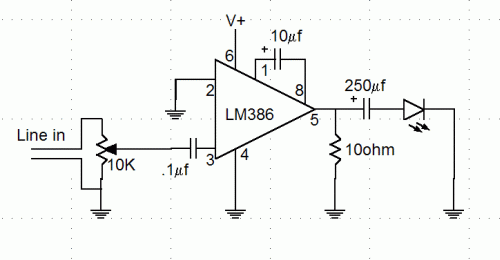 Nada es especialmente crítico sobre el circuito. El potenciómetro ajusta la ganancia de la entrada que indirectamente controla el nivel de brillo.