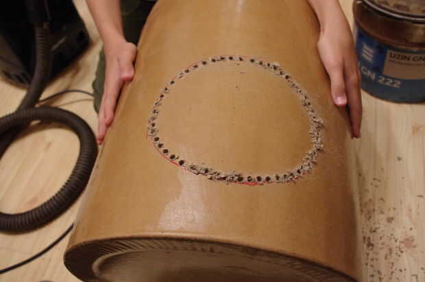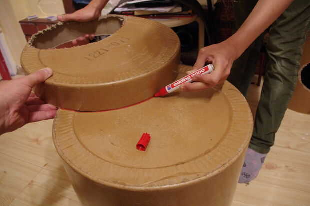 Se debe personalizar el tamaño de los agujeros y su ubicación. Es muy importante porque tiene que hacer esta torre cómodo para su gato. (por ejemplo he hecho pequeño agujero de la pata de gato)