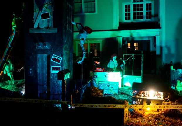 De la apertura y cierre de las puertas y arriba y abajo del motor, son controlados por una secuencia de computadora puse juntos en el programa Director de Ideas de susto. La secuencia también controla 12 otras decoraciones en la yarda.