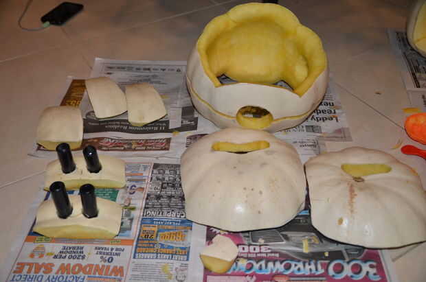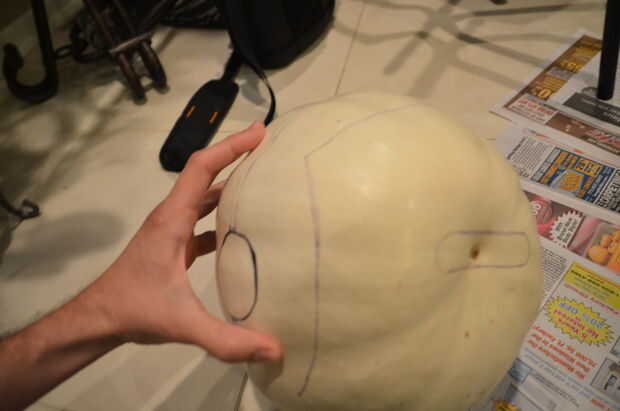 Dibujar el diseño y recortarlo. Mire mi calabaza por debajo o una torreta real de referencia. tener en cuenta el tamaño de su ojo impreso para el tamaño del conjunto.
