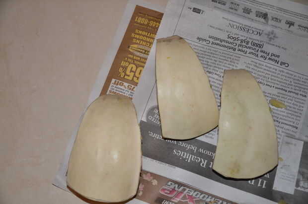 La segunda calabaza fue utilizada solamente para las tapas de la rodilla y sostenedor del barril del arma. La calabaza fue el contorno perfecto de las rodillas (Fig. 3)