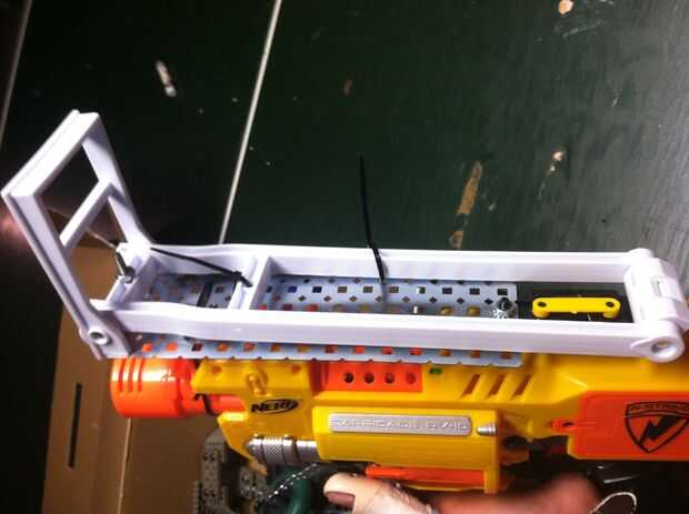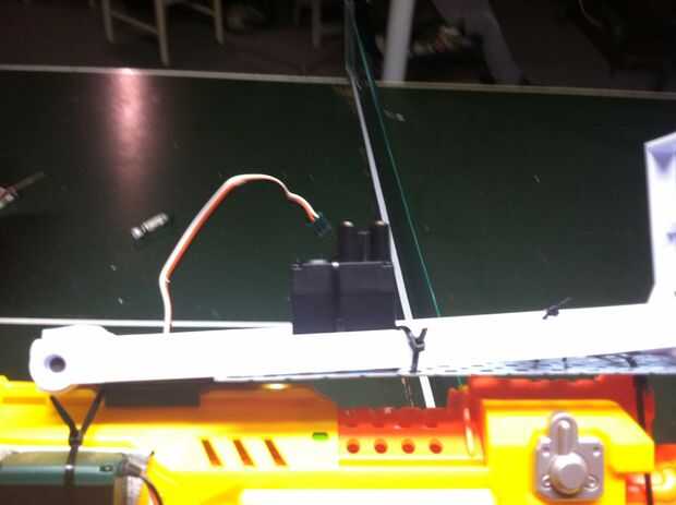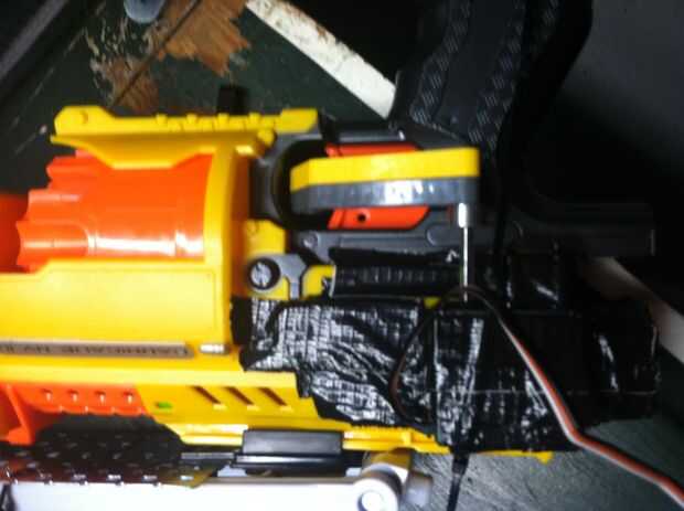 esto es una torreta del módulo de control de vex v.5, nerf barricade y montón de lazos de alambre y dos motores. Un motor para el gatillo y un motor para que el bot puede girar, puede girar 360 grados. Es automático, solo carga el cañón y su listo para ir, esta es nuestra primera instructables nos (yo y mi primo más joven) hecho para el reto de Makerbot, si conseguimos ganar dono la impresora 3D a mi escuela equipo de robótica, el equipo número 2347!!!! Walter G. encontrarás High School (copiague, NY), que haciendo un vídeo sobre cómo hacer pronto